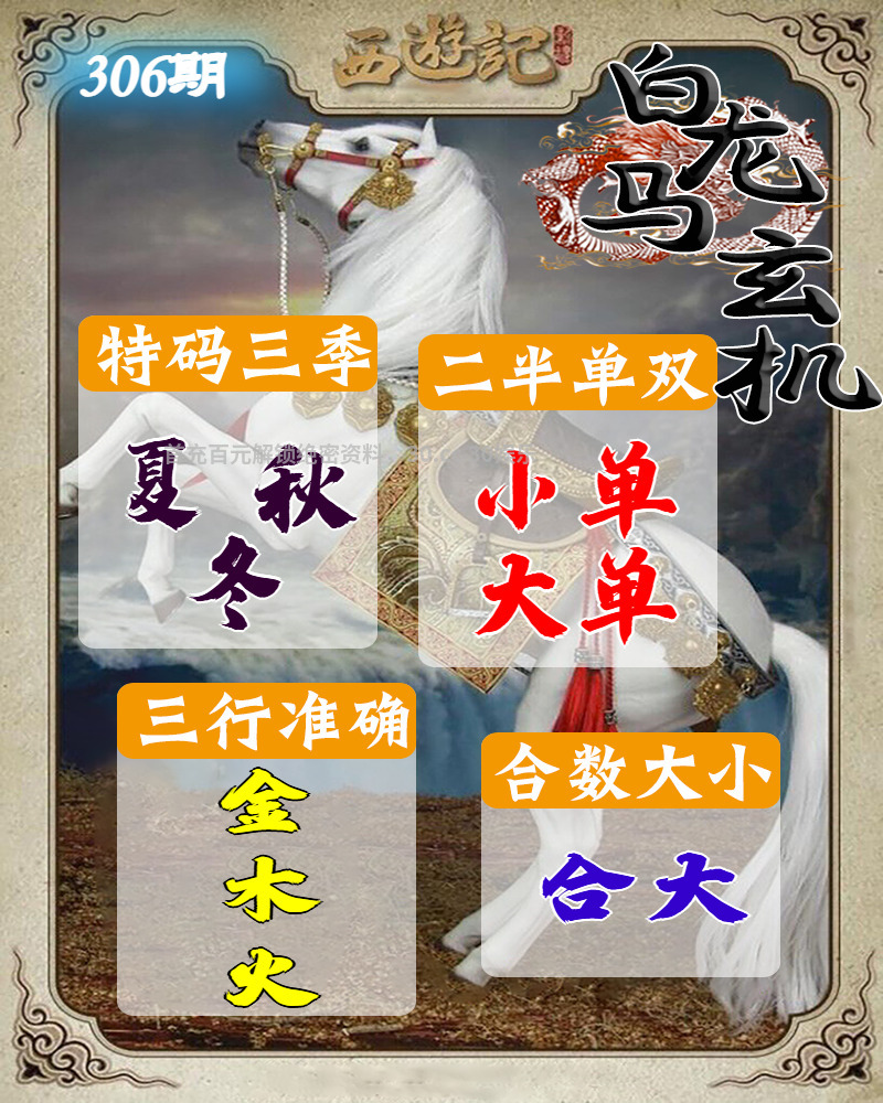 | 306期 | 《马》 | 《红单》 | 《2尾》 | 开:牛17 |